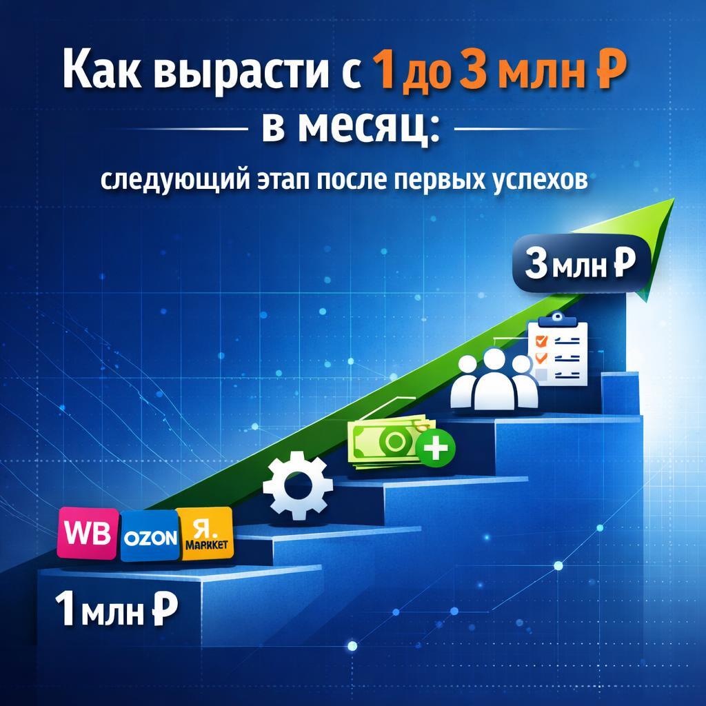 Как вырасти с 1 до 3 млн рублей в месяц на маркетплейсах — это типичный запрос селлера, который уже прошёл стадию экспериментов и вышел на стабильный оборот около 1 млн. Следующий этап для селлера после первых успехов — это не только про рост оборота, но и про сохранение маржи, управление рисками и построение системы, которая выдержит масштабирование бизнеса на маркетплейсе в условиях 2026 года.